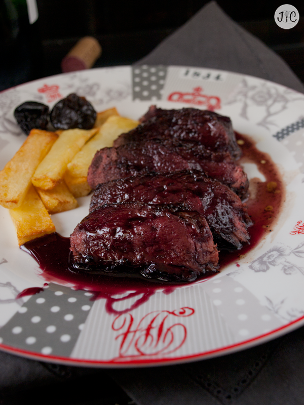 Magret de pato con reducción de vino tinto