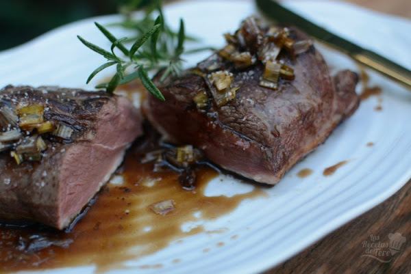 Al servir le echas la salsa por encima, adorna con la rama de romero, verás que rica combinación de sabores y la textura maravillosa del magret, se deshará en tu boca, acompañé con ensalada de rúcula y tomates cherry y con un buen vino tinto reserva de D.O. Toro, con carácter, todo un majar ideal para las fiestas!!