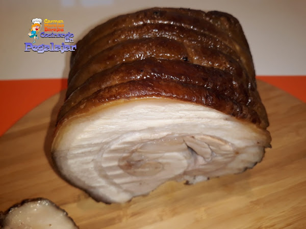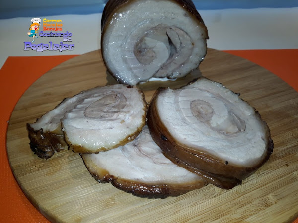 Enrollamos la panceta sobre sí misma, y bridamos con hilo de cocina.