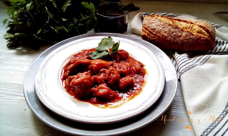 Es una receta tradicional muy fácil y sabrosa, con pocos ingredientes tenemos un guiso jugoso y de categoría......siempre acompañado de un buen pan para mojar!!