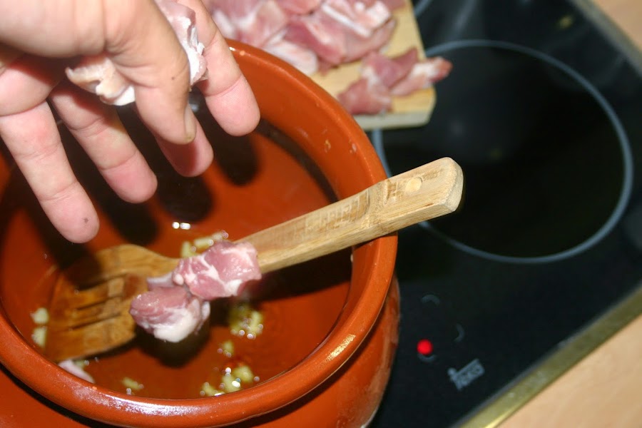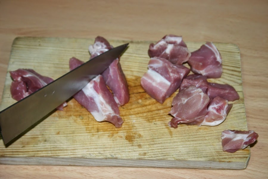 troceamos los trozos de magro en dados, o si no, los pedimos cortados en la carniceria y salpimentamos