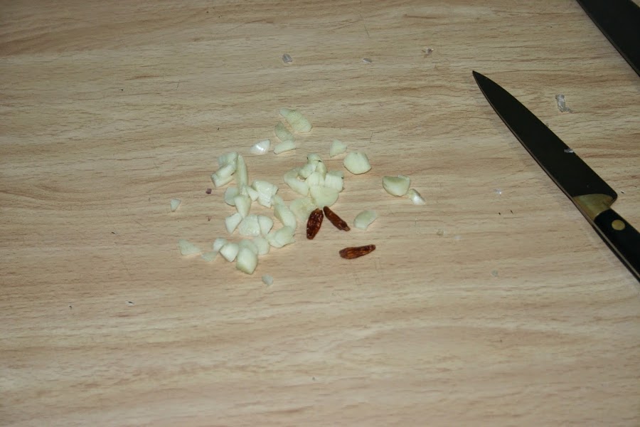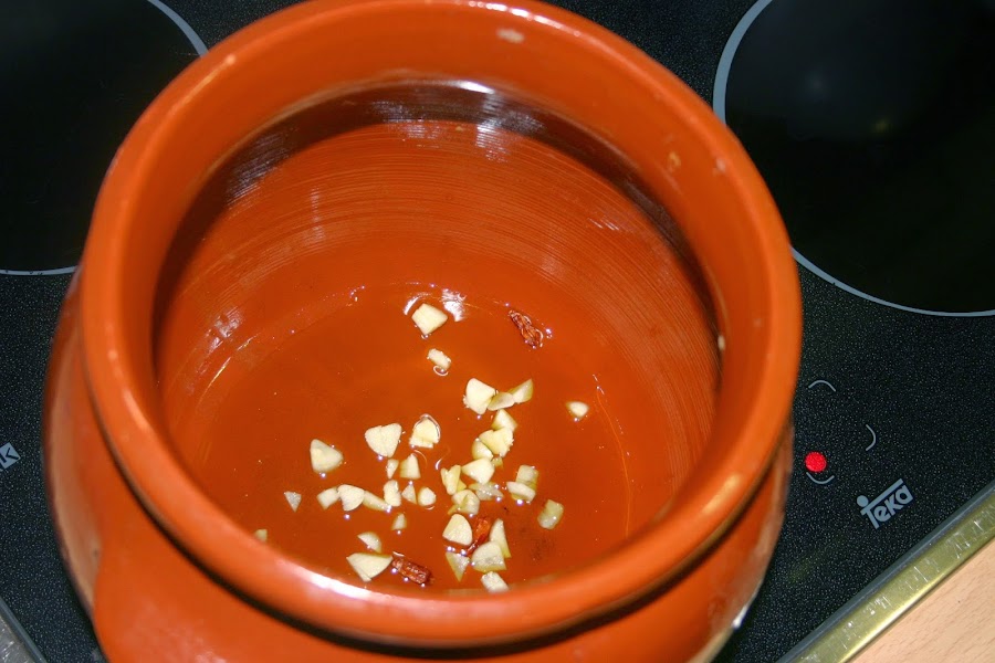 echamos aceite en una olla y freimos los ajos y las cayenas