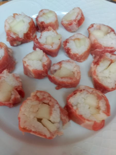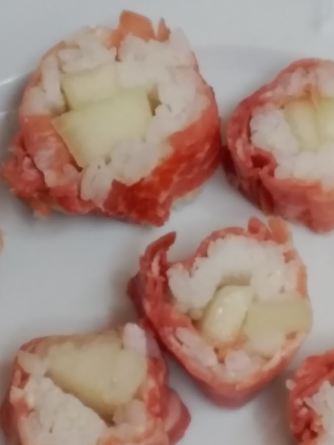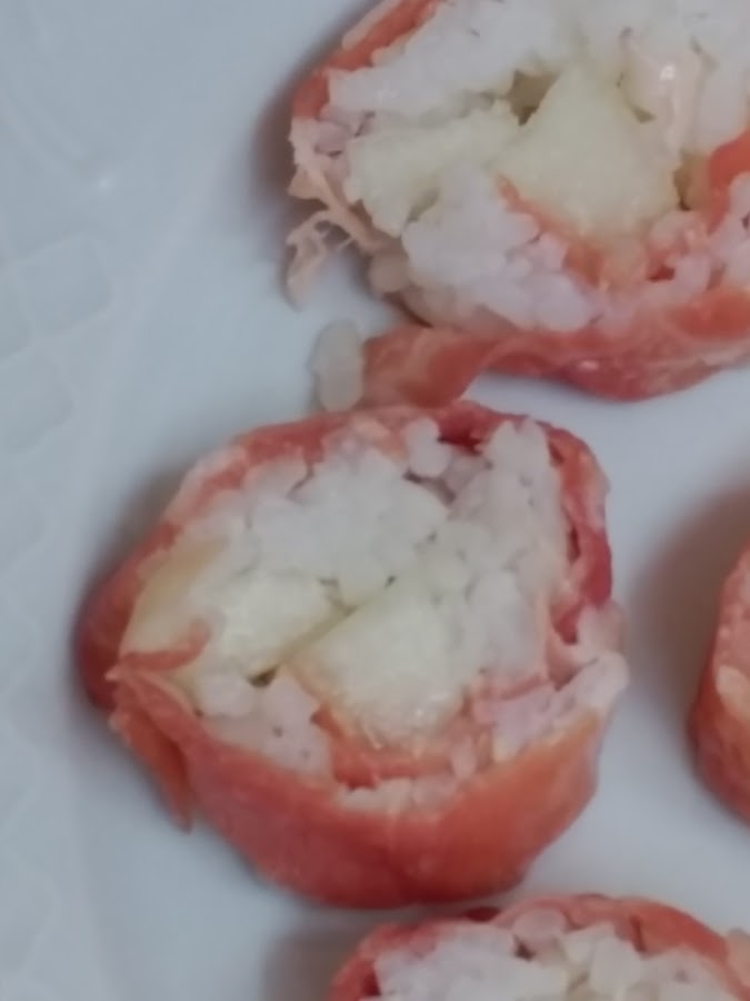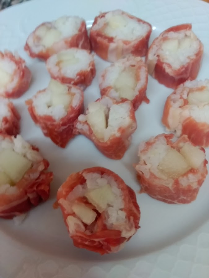 IMPORTANTE: si pinchas AQUI veras como se prepara el verdadero sushi y puedes fijarte en la forma de hacer el arroz y de montar el maki sushi (en este caso de jamon con melon).