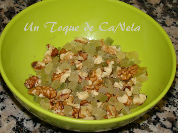 Sacar y agregar las nueces y la fruta escarchada. Dejar enfriar.
