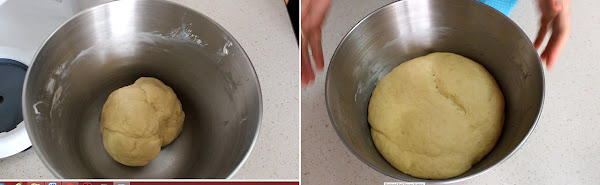 La dejamos en un cuenco, la tapamos con un paño y dejamos que leve en un sitio cálido hasta que doble su volumen. 1-2 horas...
