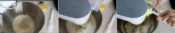 Hacemos la masa:En el bol del robot o en un cuenco ponemos la harina junto con la levadura ( si es fresca la tendremos que diluir en un poco de la leche templada), el extracto de vainilla, la yema, la mantequilla , la sal, el vodka o ron y el azúcar. Dejamos que se mezclen y se amasen todos los ingredientes al menos durante 5 minutos. Si lo hacemos a mano la amasaremos hasta conseguir una masa suave y que no se pegue en las manos.