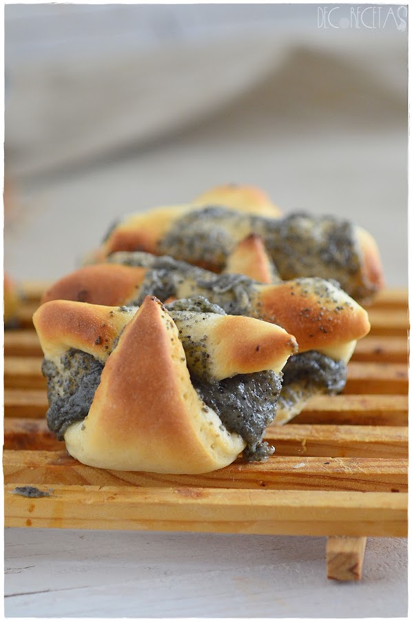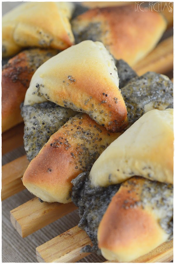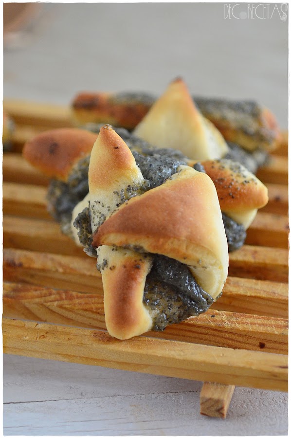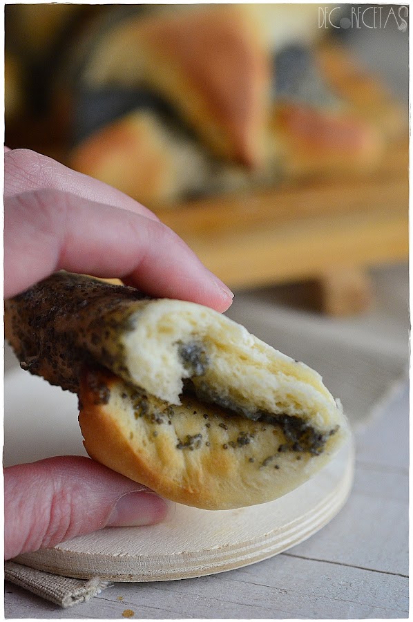 Pues como os cuento, es una receta polaca, normalmente en forma de rollo, y con un relleno de semillas de amapola característico. En mi caso quise hacerlo de manera un poco distinta no enrollandolo del todo y dejándolo con forma de medio croissant como podéis ver en las imágenes