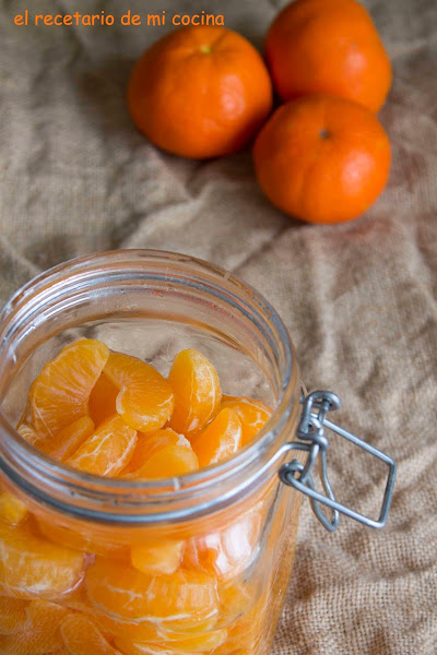 * Mientras se hace el almíbar, ponemos los gajos de mandarina, escurridos en un bote hermético.