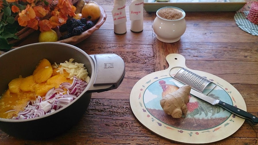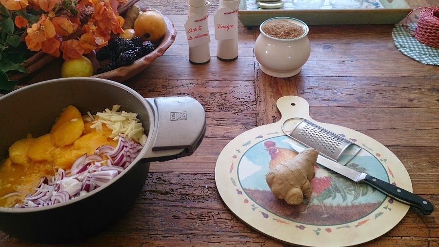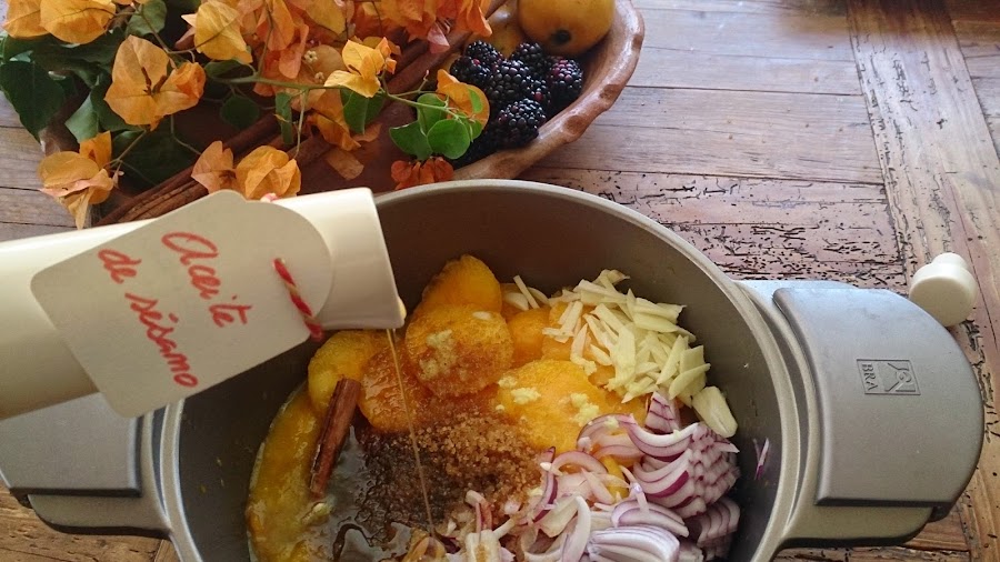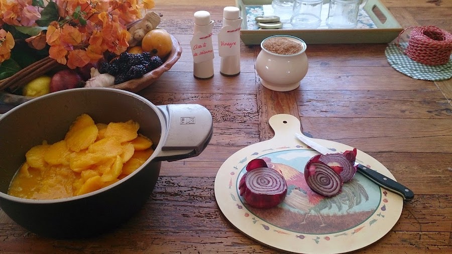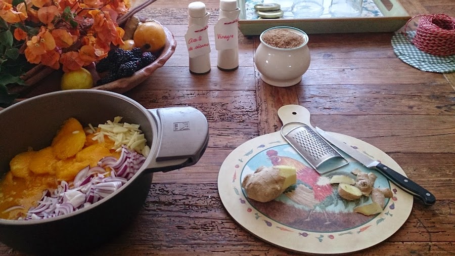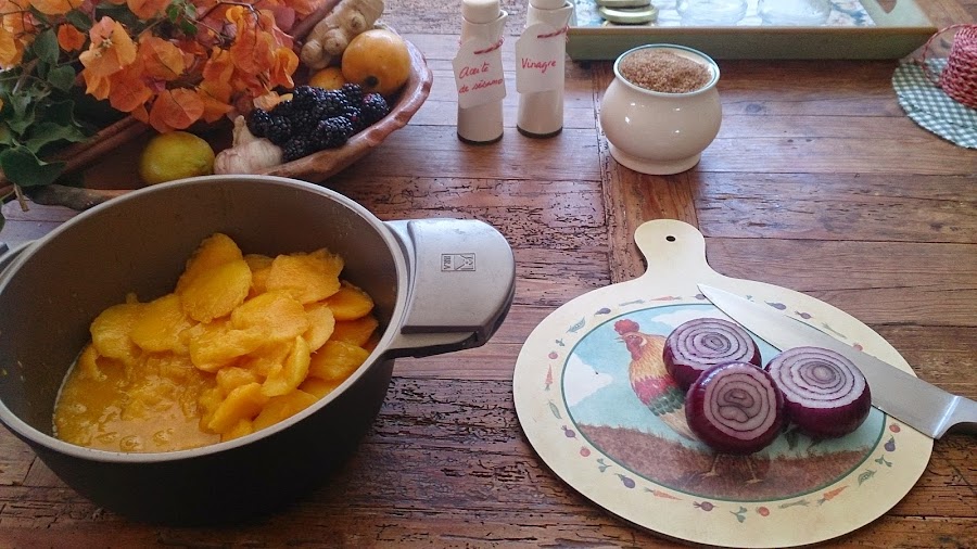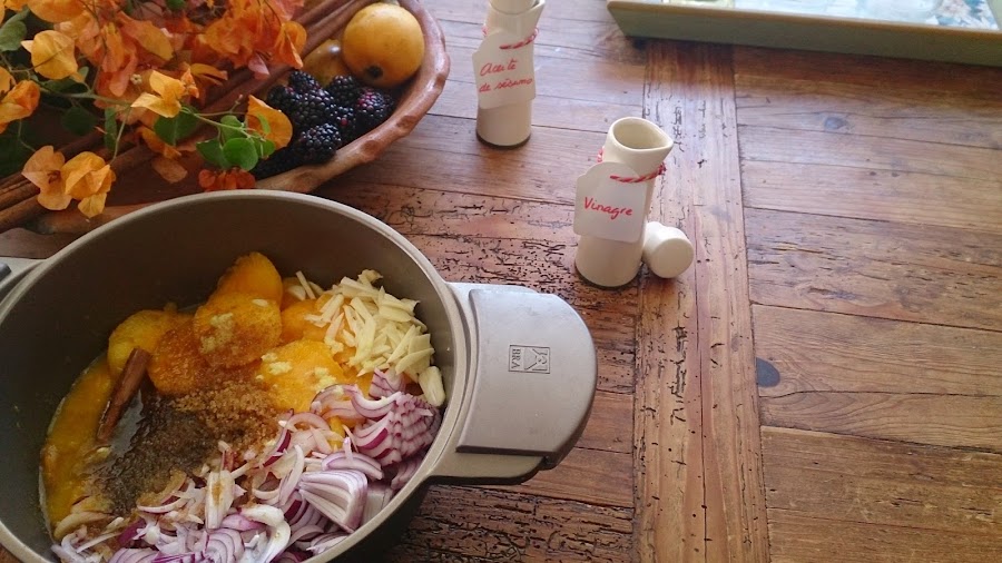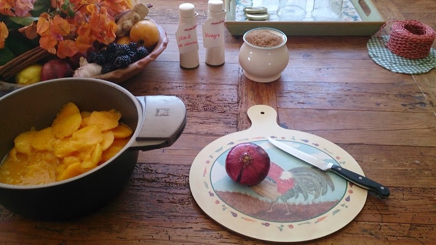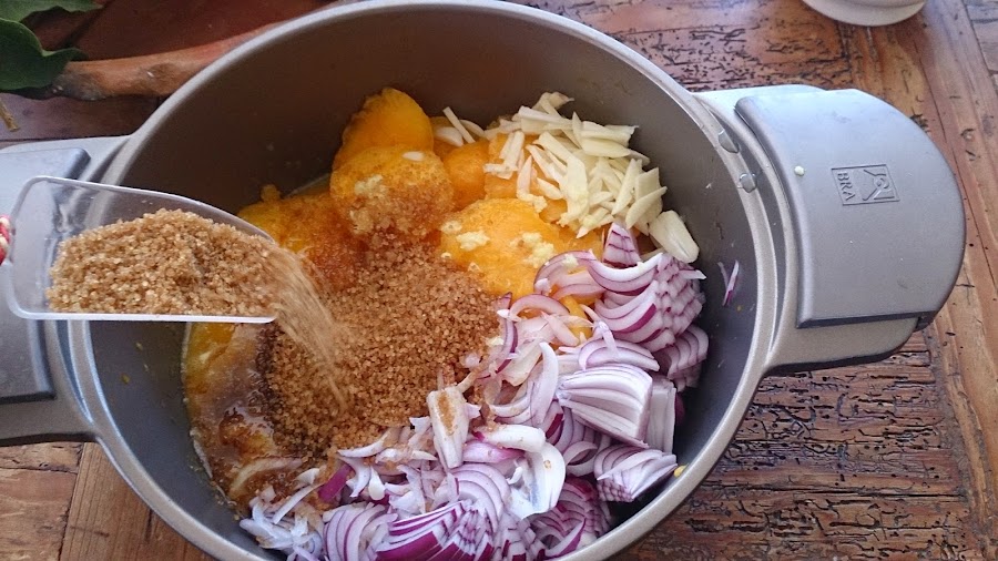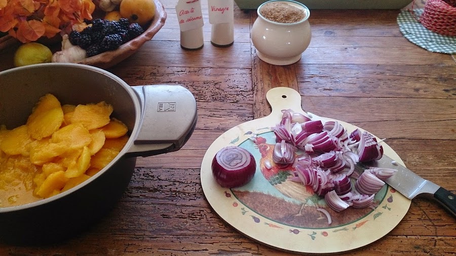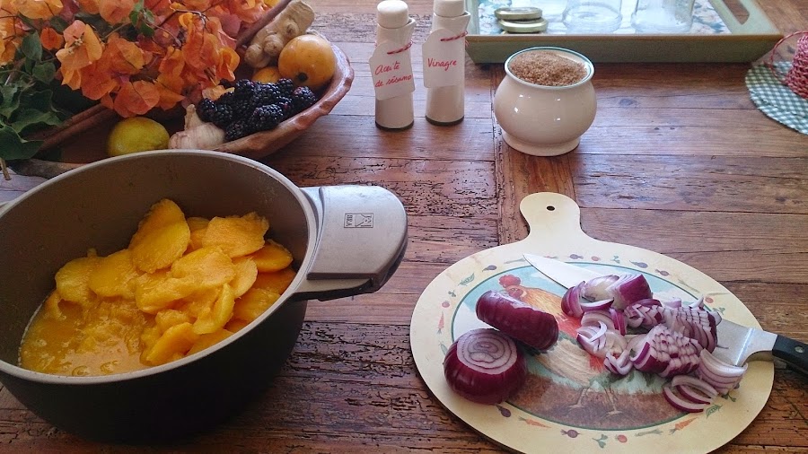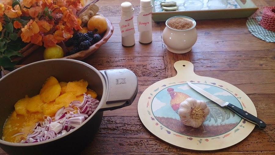 ...empiezas esterilizando en agua hirviendo los tarros, las tapas y la fuente donde vayas a colocar el mango chutney...