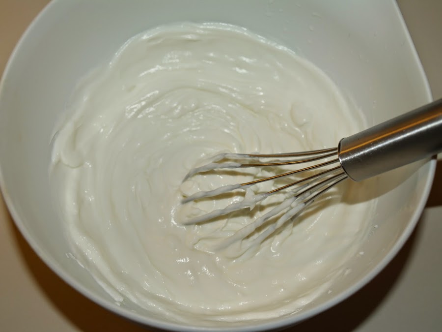 - Una vez escurrido el yogur, el postre no tarda nada en prepararse. Lo ponemos en un bol, añadimos el azúcar o edulcorante y mezclamos batimos muy bien, hasta que todo el azúcar se haya disuelto.