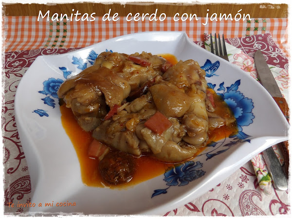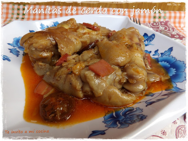 Colocamos las manitas en la cazuela y cubrimos con agua de la cocción.