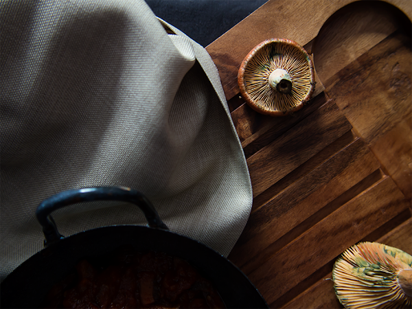 Picamos y rehogamos las setas, níscalos y boletus en mi caso y mezclamos con la salsa que ya habremos pasado por el chino, dejamos que se cocine durante otros 10 minutos y juntamos con las manitas, otros 10 minutos y ya tienes el plato hecho.