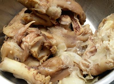 Para los que nunca las hayáis probado, os cuento que es una carne gelatinosa, casi todo cartílago, suave y sin apenas grasa. Es muy frecuente verlas en cocidos, estofados y servida como tapas en muchos bares.