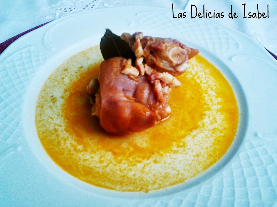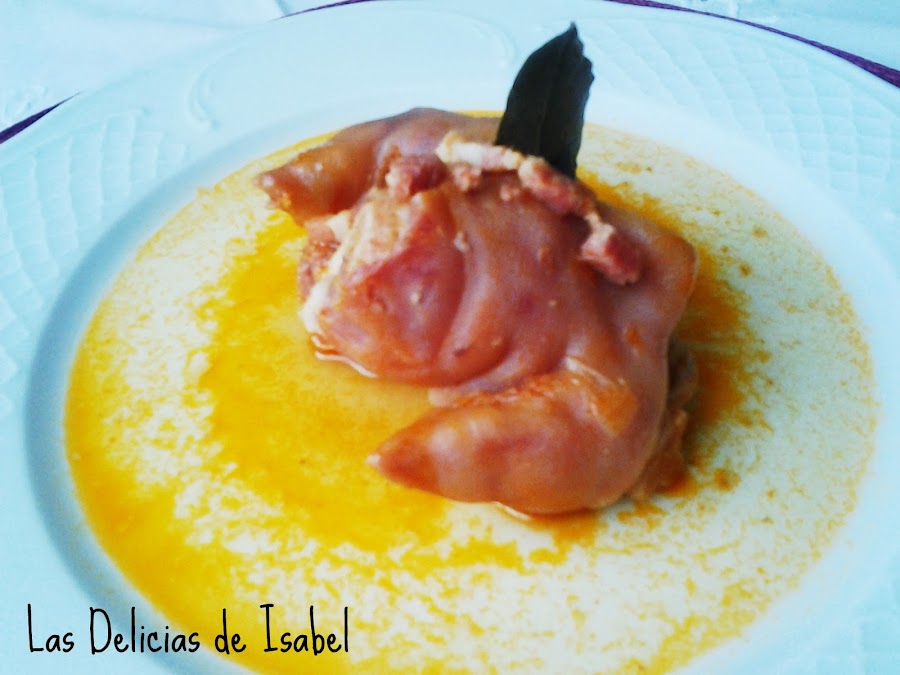 Echamos esta mezcla a la olla con las manitas y cundo rompa a hervir lo dejamos cocer todo junto 2 hora y media a fuego lento.