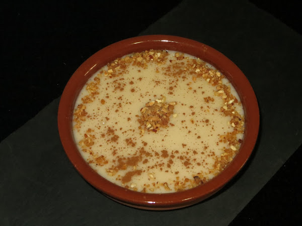 La movemos constante con una varillas hasta que llegué a ebullición y espese, luego sacamos la ponemos en fuentes de barro y echamos para decorar canela en polvo y almendra crocanti. Una vez que se haya enfriado la llevamos al frigorífico hasta la hora de degustarla.