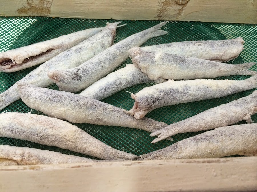 Aunque tal y como os he explicado el tamaño actual de los boquerones que hoy podemos adquirir en el mercado no es el mismo de los de antaño, los malagueños somos fieles a nuestras costumbres y seguimos "enjaretando" nuestros manojitos de boquerones.