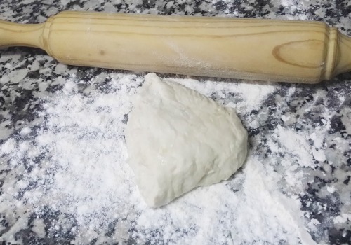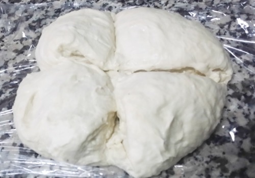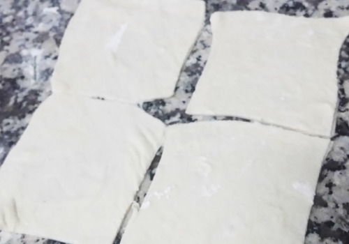Cortamos la masa en pedazos para que sea más fácil de trabajar.