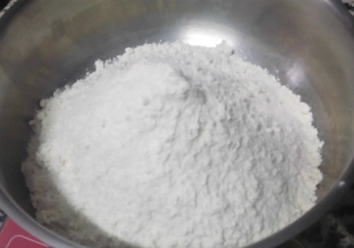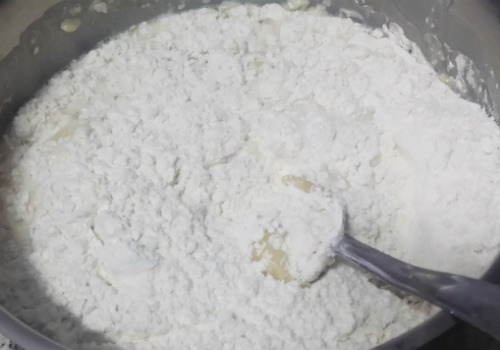 Colocamos en un bol la harina, la sal, el aceite y el agua. Mezclamos bien.
