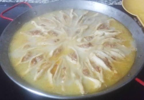 e introducimos la paella en el horno moderado hasta que se dore la masa.