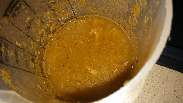 Cogemos la carne, un poco de grasa y todo lo demás que ha quedado (menos el laurel que lo tiramos), se pasa por la batidora hasta que quede al gusto. Ya tenemos nuestra zurrapa.