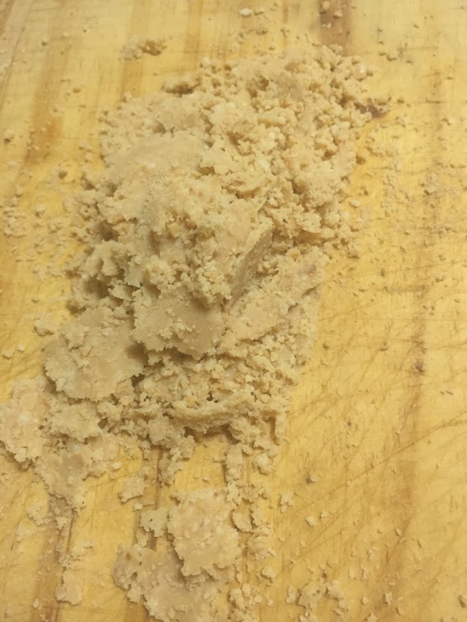 Lo pasas a una tabla limpia y con ayuda de un palo de amasar lo trituras.