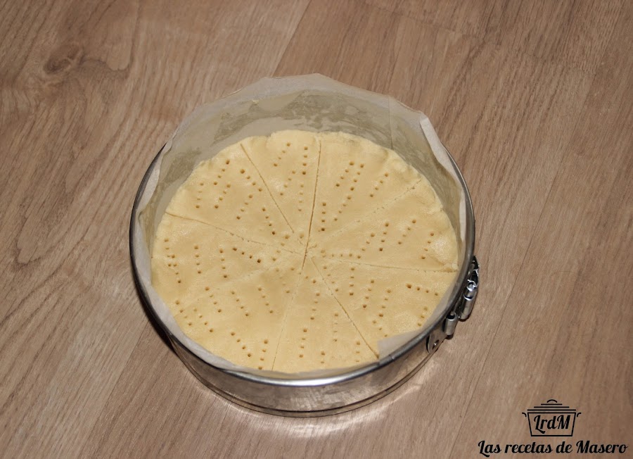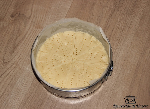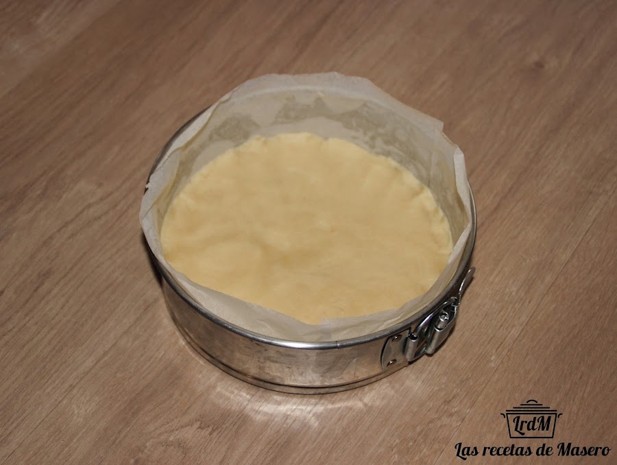 Precalentamos el horno a 160ºC. Engrasamos el molde y lo forramos con papel de horno.