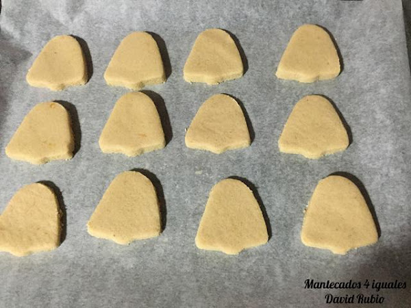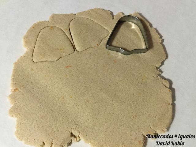 Una vez bien estirada usaremos los cortadores que más nos gusten para cortar nuestros mantecados. Yo utilice uno con forma de campana muy chulos.