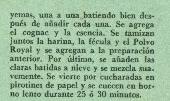 Añadir la harina tamizada con la levadura mezclando bien. Por último batir las claras a nieve e incorporarlas a la mezcla con movimientos envolventes. Colocar la masa en las cápsulas y cocinar en horno a 180º durante 20 minutos aproximadamente. Recuerden que cocino en un horno a gas, con calor sólo de abajo y en la rejilla central.