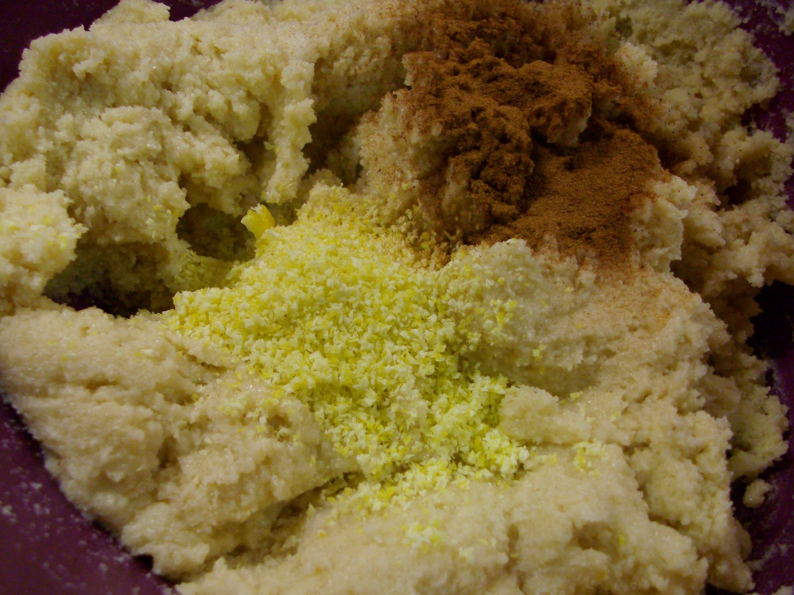 en un bol grande amasar la manteca a temperatura ambiente...añadir el aceite...el azucar..la almendra. las yemas.....la harina ..la ralladura de piel de limon y la canela molida