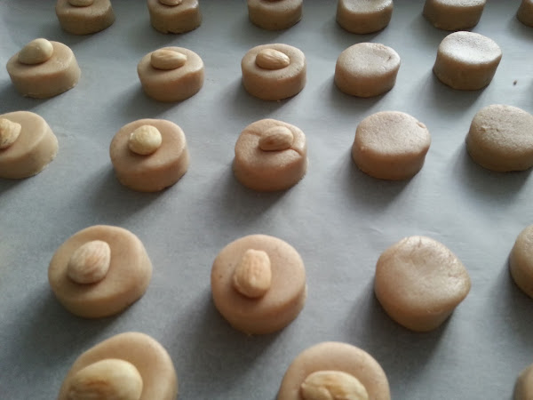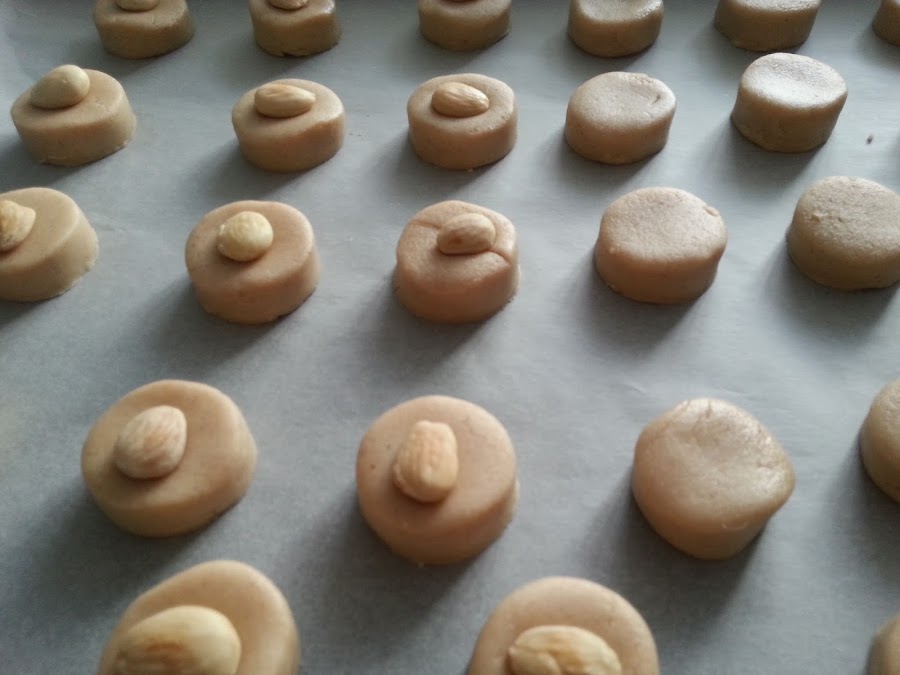 Podéis ponerles sésamo por encima, o una almendra, o nada, y luego, una vez fríos, espolvorearlos con azúcar glas.