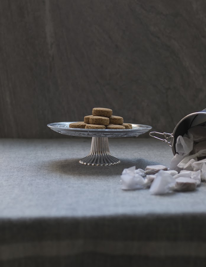 Se pueden decorar con el mismo azúcar de abedul ( o con azúcar glas), o mojar un poco el mantecado antes de hornear y poner unas semillas de sésamo.