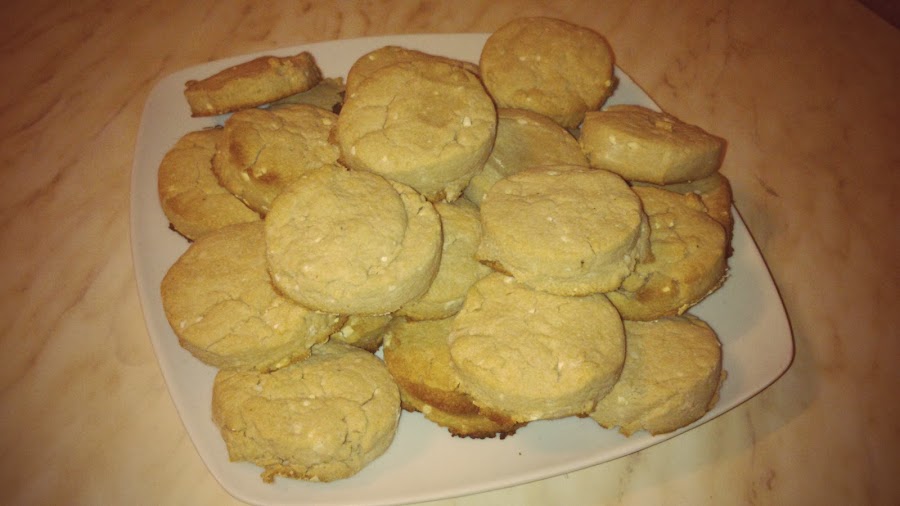 Una vez amasado, separa la masa en dos porciones, extiende con un rodillo la primera porción y haz una placa de unos 2 cm de grosor. Con un cortapasta o con un baso de café vamos dando la forma al mantecado.