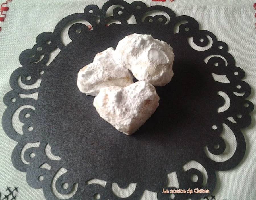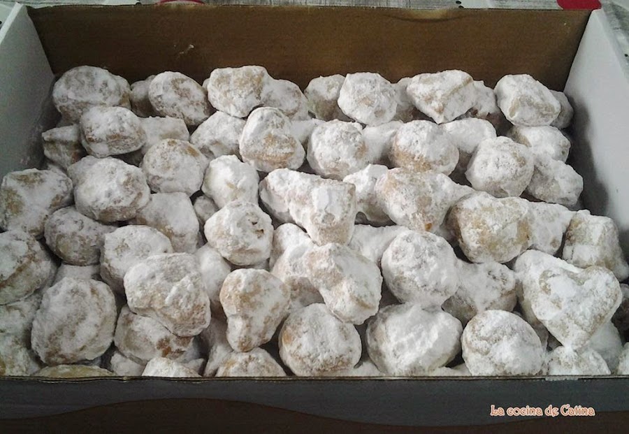Los sacamos del horno y dejamos que se enfríen un poco antes de pasarlos por el azúcar glas, (porque si los rebozamos recién sacados del horno, absorben todo el azúcar.
