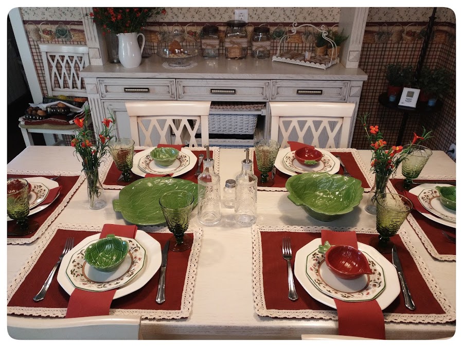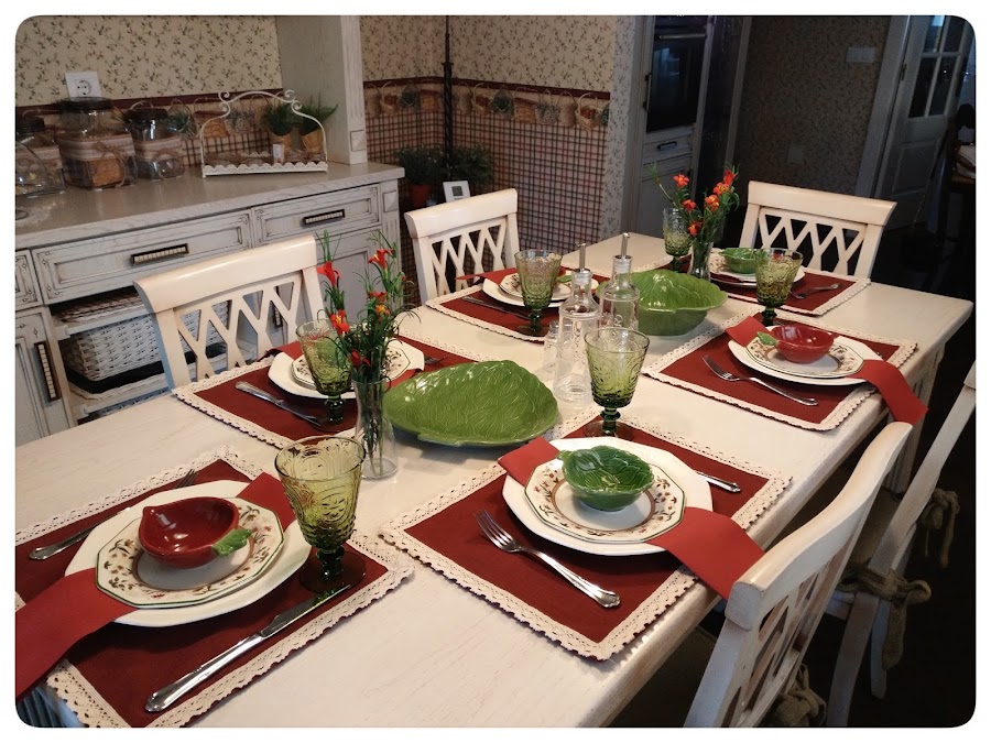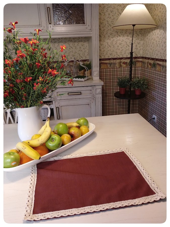 Hice seis manteles individuales y un camino de mesa, con puntilla por supuesto, me encantan las puntillas !!