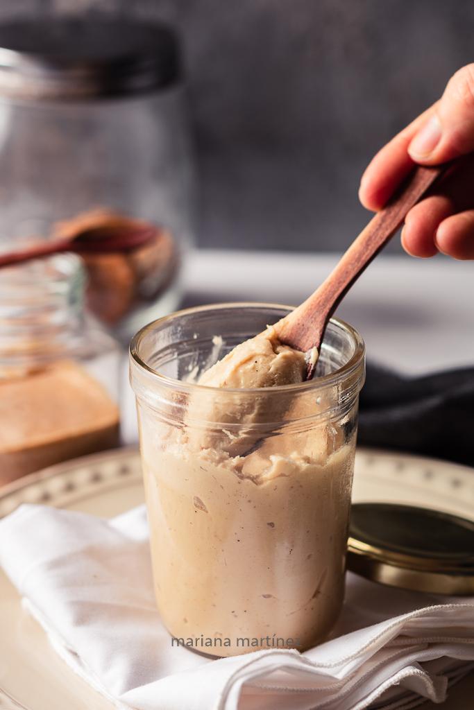 Esta es una mantequilla casera, natural, ni que decirles lo saludable que es, perfecta para meriendas y antojos de media tarde o media mañana; untada sobre alguna galleta integral o sobre fruta fresca, que es mi opción referida.
