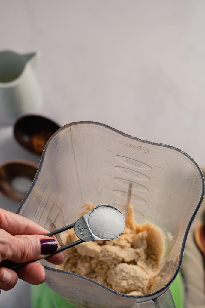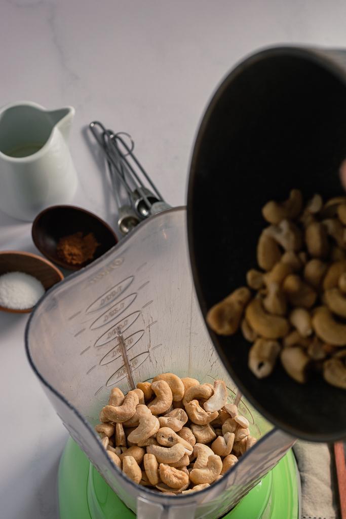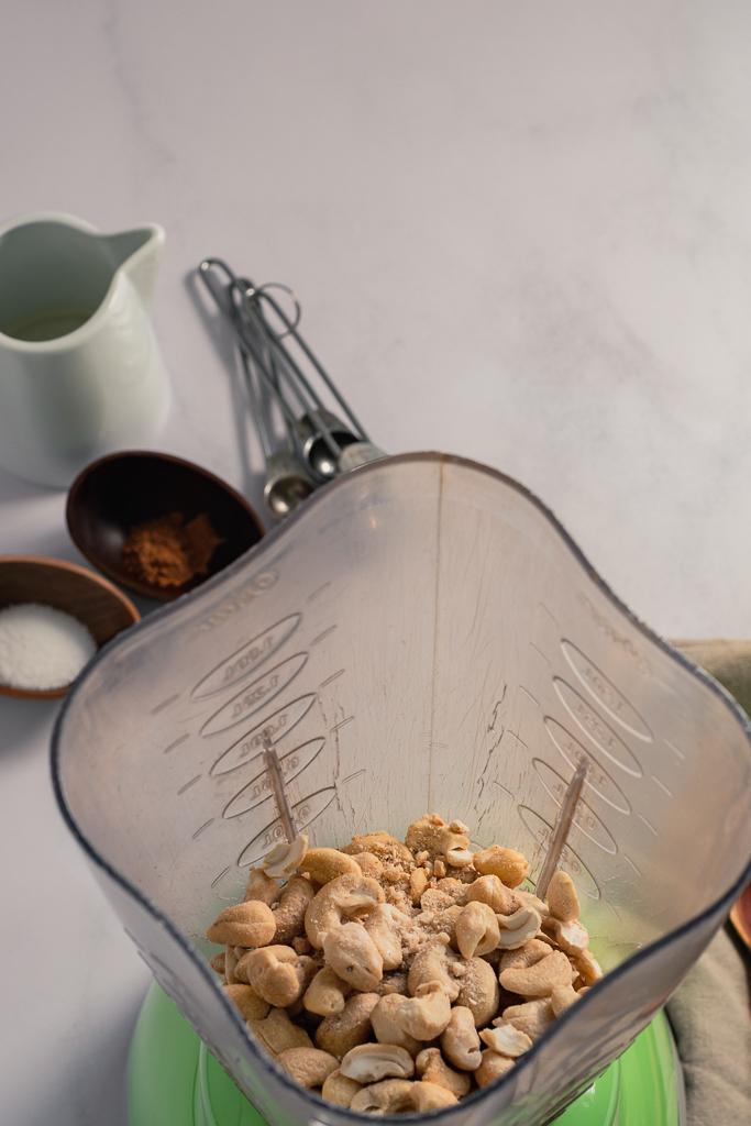 Como pueden ver en el carrusel de fotos que les deje arriba, vertemos los anacardos en la licuadora y comenzamos a procesar. Con la espátula vamos despegando el arenado que se adhiere a las paredes y continuamos dando pulsos para seguir procesando. Una vez vemos que comienza a soltar su grasa, añadimos la pizca de sal, de canela y el aceite. Seguimos procesando y retirando con la espátula la masa que ya se forma y se adhiere a las pardes. La mezcla se va a poner caliente, es normal, mientras más procesemos mas caliente se va a tornar. Cuando comienza a verse cremosa, añadimos el endulzante al gusto y probamos el punto de dulce. Seguimos procesando y ayudándonos con una espátula para que toda la mezcla quede uniformemente integrada.