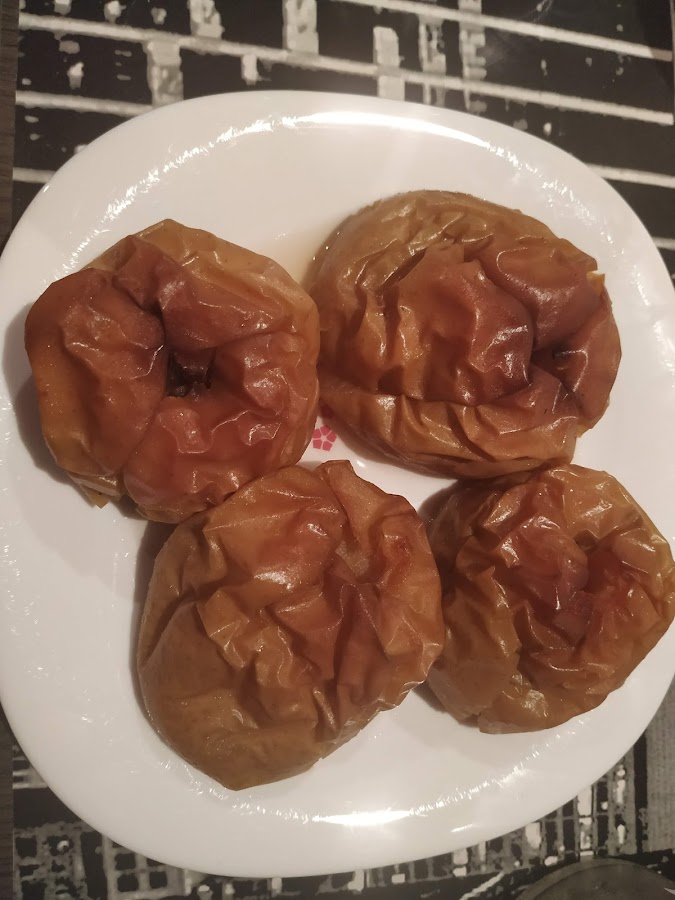 seguidamente vamos ya a pasarlas a hornear, previamente habremos encendido el horno a 180º para que a la hora de meter las manzanas estuviera caliente, horneamos durante aproximadamente 30-40 minutos, veréis que las manzanas sacan jugo y la piel se oscurece, mirad que no se quemen porque según potencia de cada horno tardarán más o menos, es muy fácil de hacer y muy buenas para un postre para dieta blanda, espero que os gusten