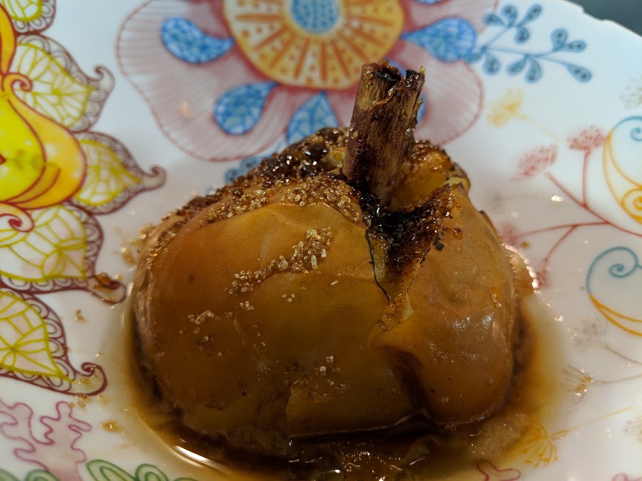 Yo las presento sacando la ramita de canela, a modo de rabito de la manzana, con una cucharadita de azúcar moreno por encima que quemo con el soplete de cocina