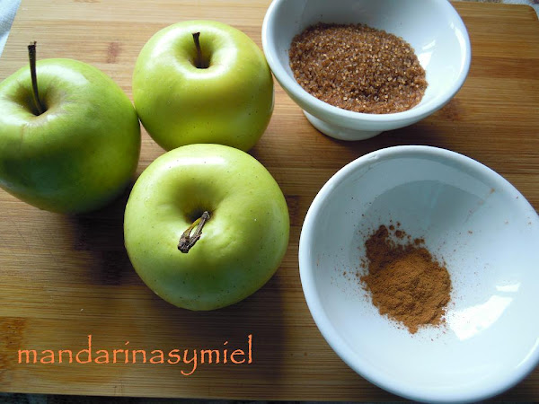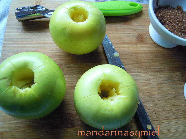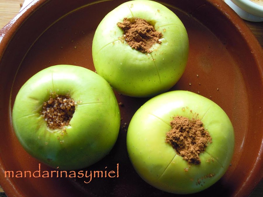 Parece mentira la cantidad de recetas cotidianas y familiares que suelo hacer en casa y que no se me ocurre poner en el blog, son tan de casa que ni lo pienso, con la de veces que suelo hacerme manzanas al horno.... pero hasta que se las he visto a Blanca, no había pensado en ponerlas.
