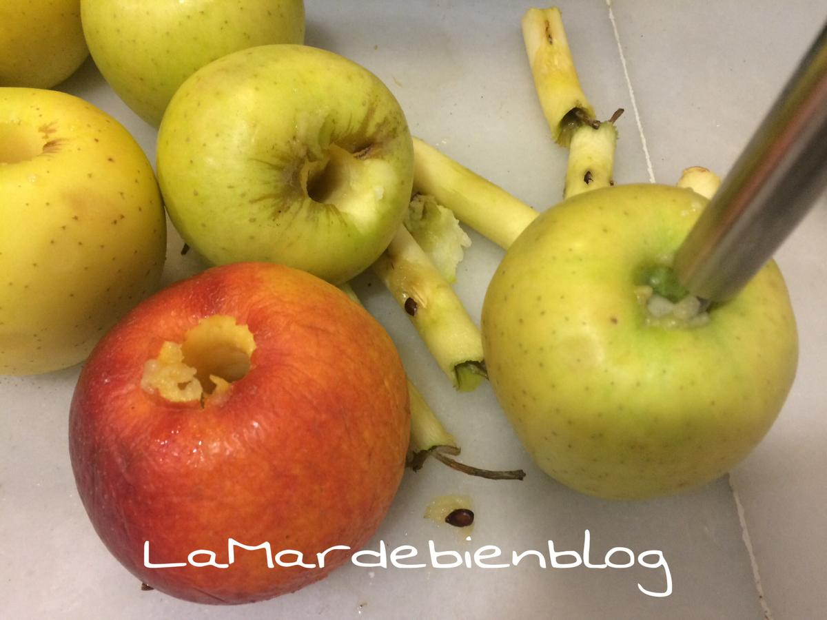 Manzanas asadas Ingredientes: 4 Manzanas 200g de nueces 1 cucharada de azúcar 1 cucharada de miel 1 cucharada de mantequilla Elaboración: Lavar bien las manzanas y descorazonar. Intenta quitar parte de la manzana con cuidado de que no se abra por abajo, haced un buen hueco, los trocitos de manzana que quitéis reservarla (quitando los huesecillos, claro) En una picadora pon las nueces y hazla puré ...