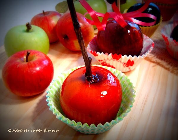 La manzana caramelizada (candy apple) suelen venderla en las ferias de pueblo, por lo cual es archiconocida. No debemos confundirla con la manzana dulce (caramel apple). Las dos preparaciones son dulces, como es evidente, pero la primera (de origen norteamericano), va recubierta con una capa fina de caramelo crujiente teñido de rojo, mientras que la segunda se recubre de un caramelo más cremoso, similar al toffee, Por lo general se adorna con crujientes de frutos secos, chocolate, etc.. Estas última son originales de Reino Unido, Irlanda, Canada y también de EEUU. Se preparan principalmente la víspera de Todos los Santos.