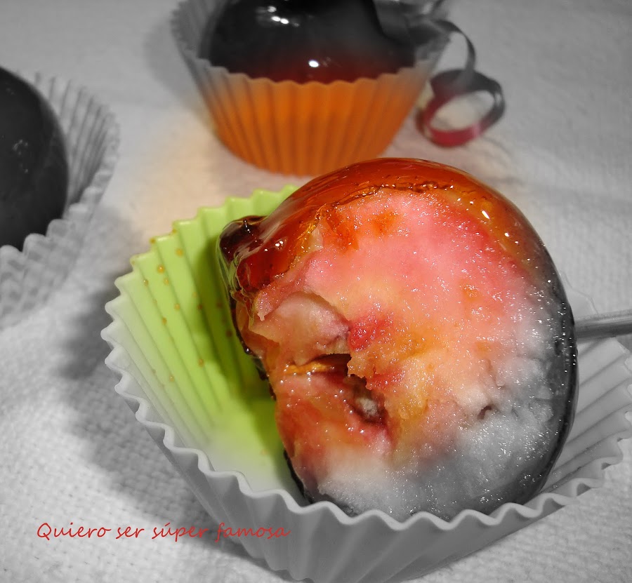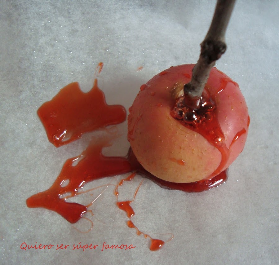 Si el caramelo no está lo bastante espeso, y las manzanas no están frías, pasa esto. Y si nos pasamos de cocción se nos quema.
