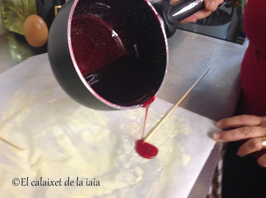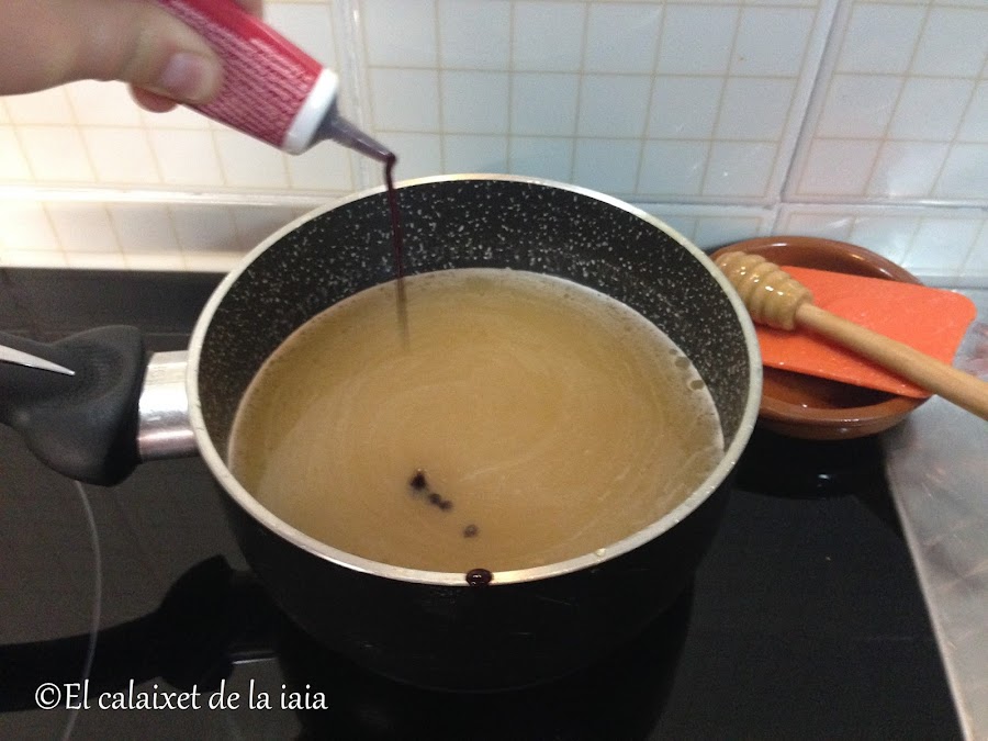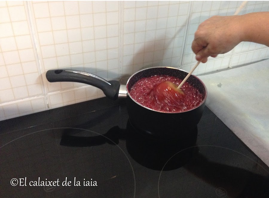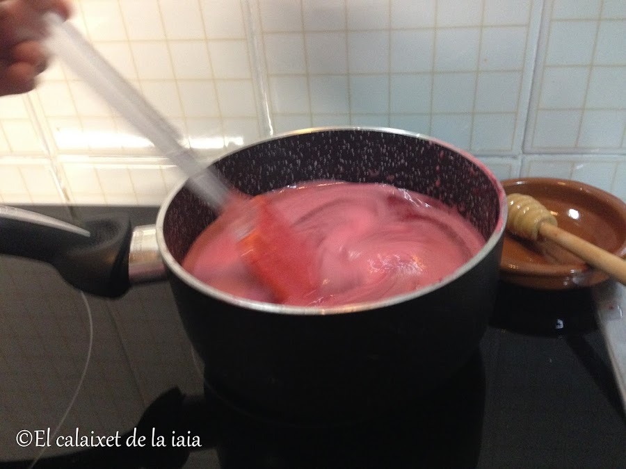 mientras removemos, hasta que tengamos el rojo deseado y ya dejaremos de remover y que se vaya haciendo el caramelo