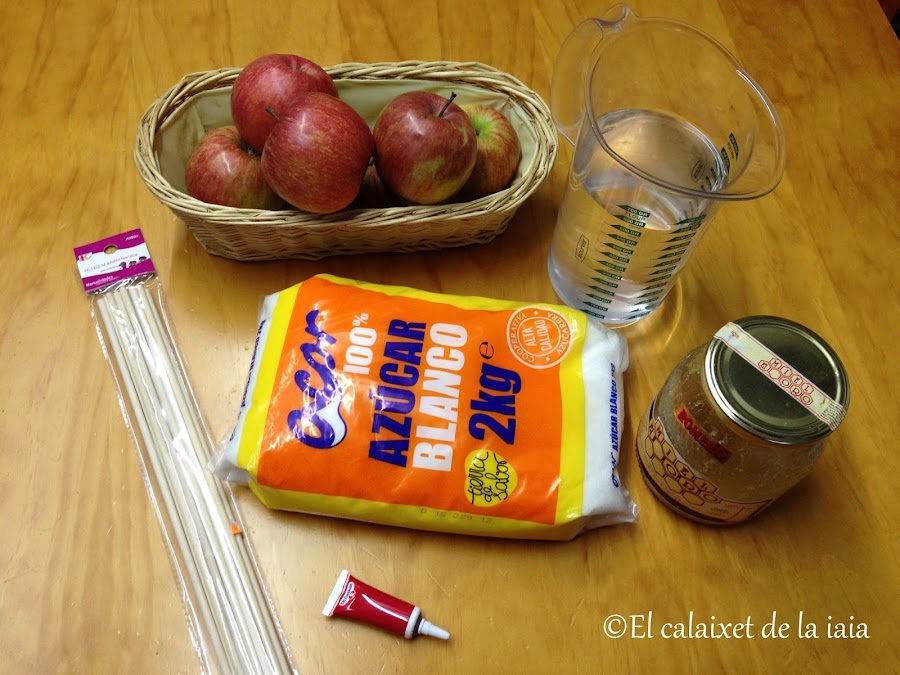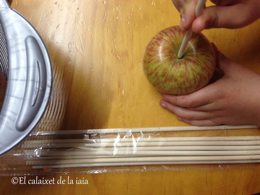Los palitos han de ser fuertes para resistir el peso de la manzana y el caramelo y la presión de morderlas....los de brochetas, no sirven.