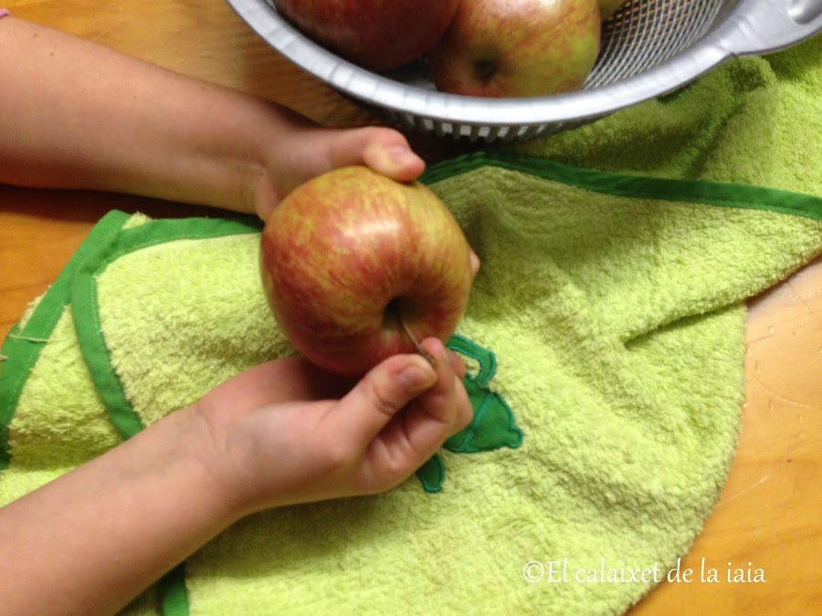 Lo primero que vamos a hacer, ya que las comeremos con la piel, será lavarlas concienzudamente, tarea que hizo mi princesita mayor