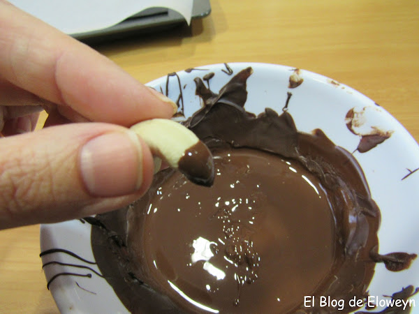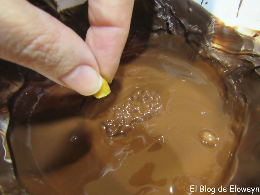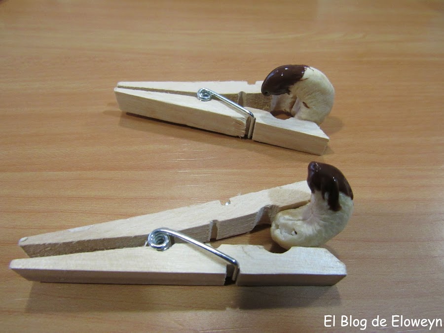 Si no se os aguanta, siempre podéis usar unas pinzas de la ropa bien limpias... jajaja. Dejamos que se seque el chocolate.
