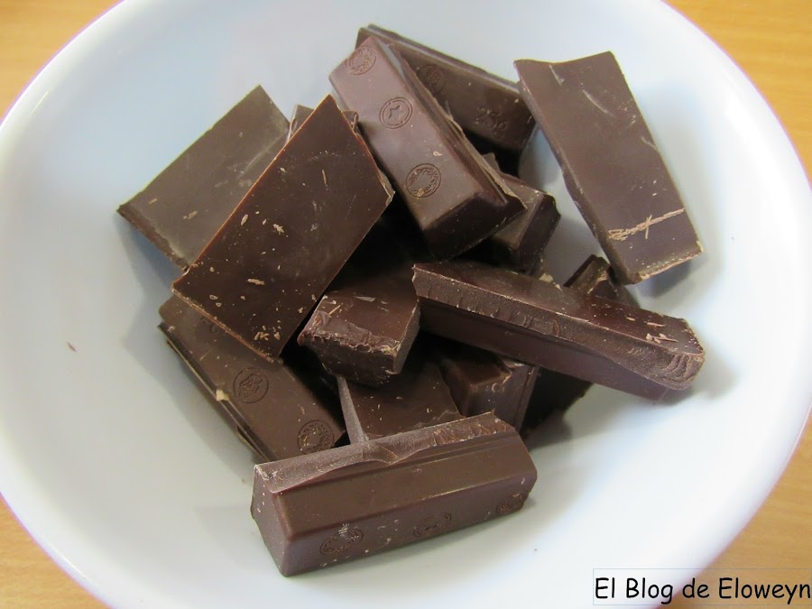 A continuación seguimos con las garras. Partimos el chocolate en trozos y los ponemos en un recipiente apto para microondas.