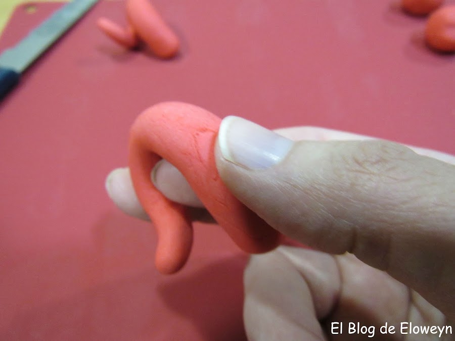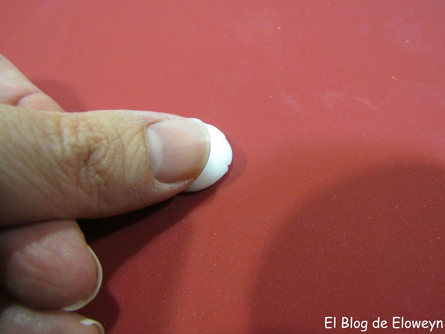 Primero de todo vamos con los cuernos de fondant, ya que tienen que pasar unas horas para que se queden duros después de moldear. Yo no tenía fondant rojo. Tenía fondant blanco y teñí un poquito.