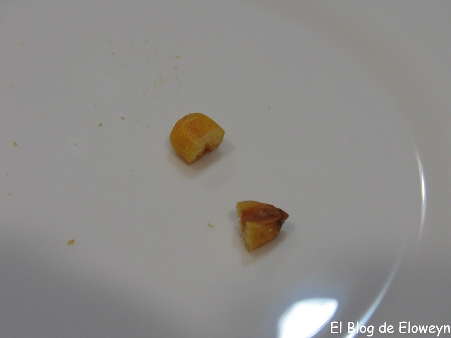 Cortamos los granos de maíz con cuidado de no romperlos.
