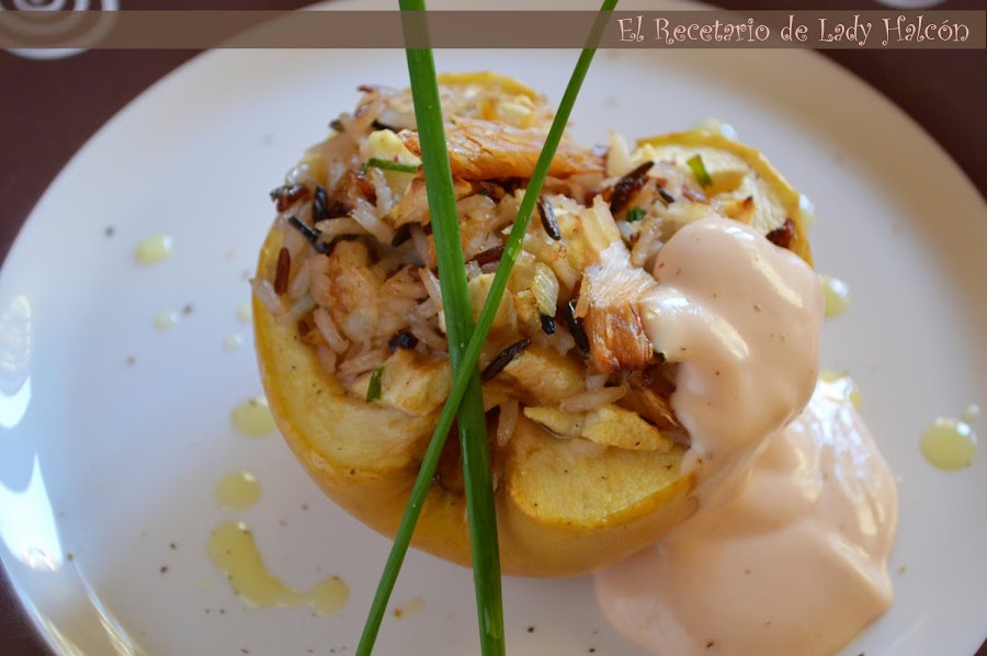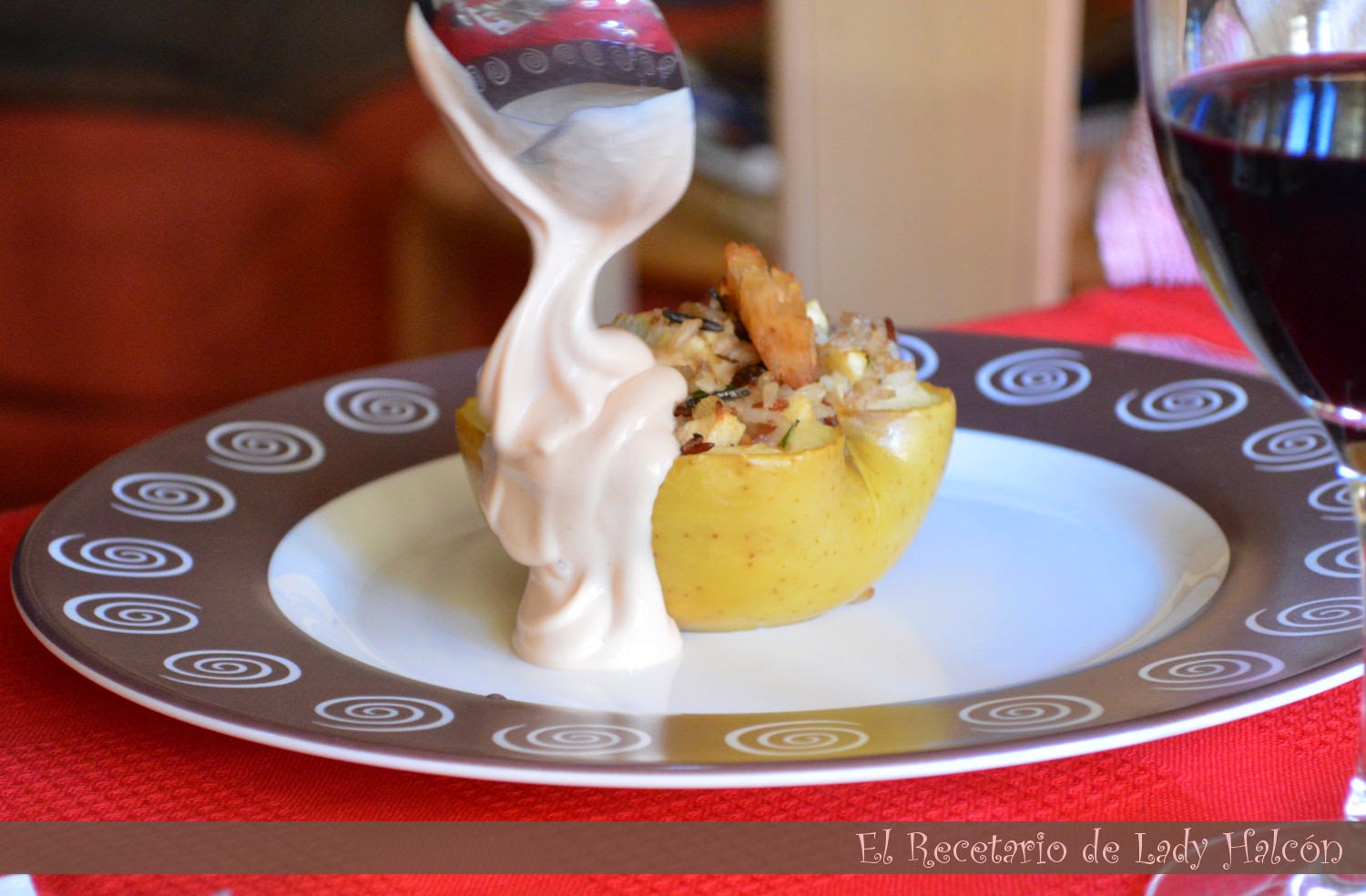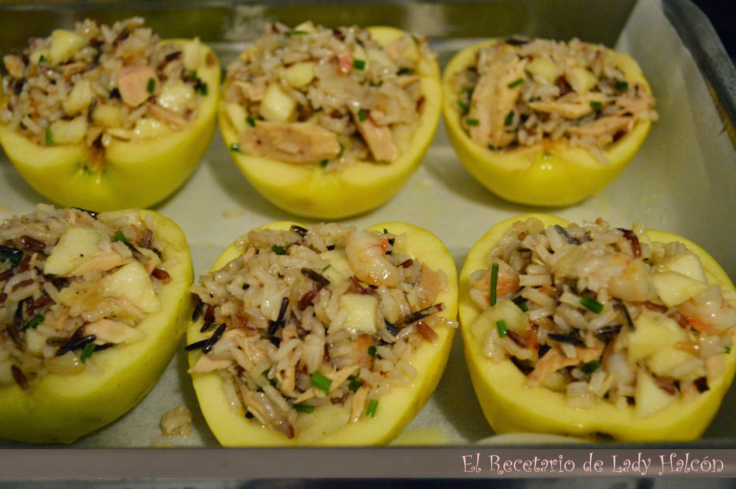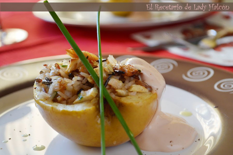 Así que estas manzanas rellenas de arroz con bonito y gambas puede ser una buena terapia de choque para desengancharse de las comilonas navideñas o para sorprender a nuestros invitados con una comida diferente y muy sabrosa, ya que lo podemos usar como primer plato poniendo media manzana o plato único con la manzana entera.
